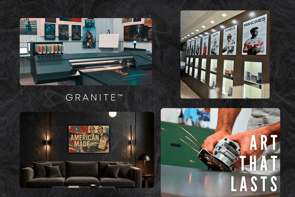 Granite Printing started with a few guys who shared a love for art, craftsmanship, and that feeling of pride when you hang something that just looks right. What began in a small South Dakota garage has grown into a USA-based print shop dedicated to creating high-end, custom artwork built to last.Every single piece we make is cut, sanded, and finished by hand — right here in our shop. We don’t outsource or take shortcuts. The metal we use is military-grade, precision-cut for clean edges, and sanded to perfection before your artwork ever touches the surface. From there, we apply fade-resistant UV printing to ensure your print looks as sharp decades from now as it does today.